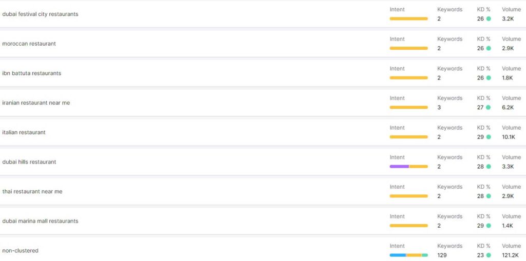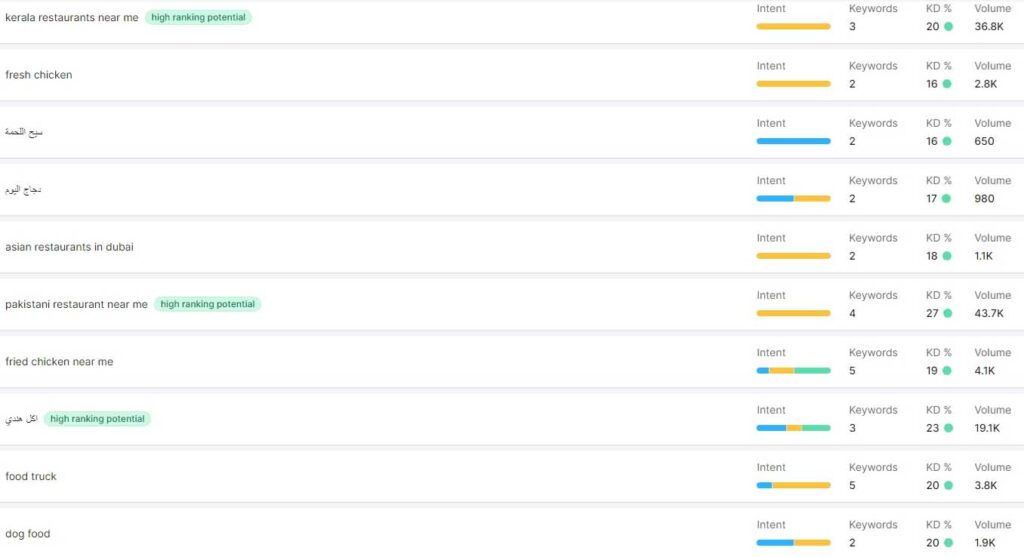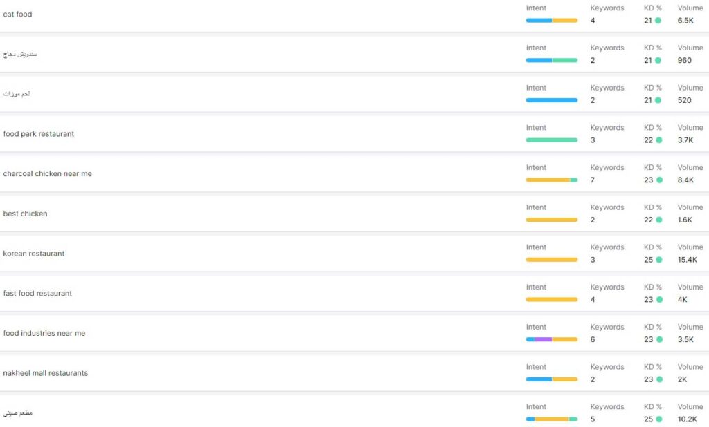 Keyword | Volume | Keyword Difficulty | Intend |